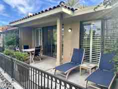 Walk through the private courtyard to discover this sought-after 2BD/2BA condo. The versatile second bedroom can serve as an office or guest room, featuring a sofa sleeper for added flexibility. Inside, you'll find contemporary upgrades throughout, including a beautifully remodeled kitchen with brand new appliances, as well as stylish furnishings. The primary bathroom has also been updated to enhance your comfort. Additional features include updated carpet, ceiling fans, and the convenience of a new washer and dryer. Step outside to enjoy panoramic fairway and mountain views from the patio, just steps away from the inviting pool. This condo is the perfect blend of style and functionality-don't miss your chance to make it your own!