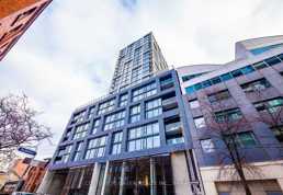 Welcome to this modern, newly built 1 bedroom + enclosed den suite located on a quiet street in a highly convenient neighborhood. The enclosed den features a sliding door and window, making it ideal as a second bedroom, home office, or guest space. Enjoy 645 sq ft of thoughtfully designed interior living space plus a spacious 117 sq ft balcony with a BBQ gas line hookup, perfect for outdoor dining and entertaining. The unit features 9-foot ceilings throughout and exposed concrete feature walls, adding a stylish, contemporary feel. Ideally located with easy access to the DVP and Gardiner Expressway, and just steps to the future TTC Corktown subway station. Enjoy being within a short walk to the Distillery District, waterfront, art galleries, shops, and parks. Residents have access to excellent building amenities including a rooftop outdoor pool, fully equipped gym, concierge service, and more.1 parking space and 1 locker included!