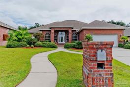 Cozy home located in the serene gated Island community of Russell Bayou, with a community pool and tennis court. This brick exterior split/open floorplan home on a quiet cul-de-sac stands out within the desirable Hellen Caro Elementary School district. The open living area features high ceilings, arched windows, (bringing in lots of natural light), a gas fireplace with wood mantle, chair rail in the dining area (double trey ceiling), office with French doors, accordion doors into the sun room, and custom finishes/millwork throughout. The kitchen includes granite countertops, stainless appliances (gas range/wall ovens), and nook (chair rail). Master suite is an oasis with a double trey ceiling, exterior doors to backyard patio, two walk-in closets, separate vanities, oversized tiled shower and whirlpool tub. Across the home are the other bedrooms (walk-in closets) with a Jack n' Jill bath finished with granite counters, separate vanities, and a tiled tub/shower. The large fenced backyard (plenty of room for a pool) even has a private outdoor shower. This location (surrounded by boating waters and mature trees) is just minutes to the white sand beaches of Perdido Key, close to restaurants, boat launch, parks, medical clinics, and 30 minutes to downtown Pensacola. Interior painted (white) in 2023 with new carpet. New roof in 2021, HVAC unit in 2017. Walk and bike on island. Accessible to Intracoastal waterway for fishing and kayaking/canoeing and boating.
