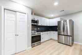 Modern kitchen with sleek appliances and ample counter space. Two updated bathrooms with stylish fixtures. Private driveway or garage parking available.