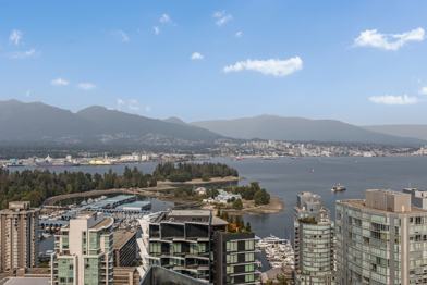 Prestigious lifestyle at its best in Vancouver's iconic building Kengo Kuma. North-east-facing residence boasts 1182 sqft, 2-bed, 2-bath, large unit on the 33rd floor. Well-appointed living space, featuring stunning interiors with an elegant curved wood feature wall in each room, oversized 243 Sqft balconies with Japanese stone garden, Miele appliances, and stone countertops. Take in the breathtaking views of the North Shore mountains and water views of Stanley Park from the floor-to-ceiling windows. The building offers an array of amenities, including a Japanese moss garden, 25m pool, wine room, on-site Michelin starred Japanese restaurant, gym, and music room. Enjoy the convenience of being within walking distance to top-rated restaurants, shopping, and Stanley Park.