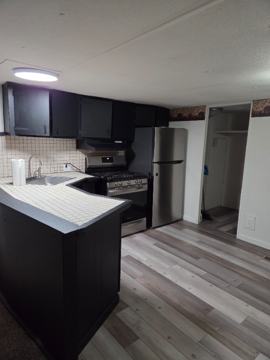 3 bedroom mobile home in quiet park now available for rent. Freshly painted and shampooed carpet. 30×80 yard with its own driveway and shed. Lot rent, Garbage and lawncare included. A pet is allowed, just not pitbulls of any sort to stay on lot supervised.
