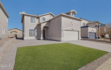 Spacious 4-bedroom, 3-bath home offering 2,342 sq ft in the highly desirable Sandstone Ranch community. This well-designed two-story floor plan provides multiple living areas, ideal for both everyday living and entertaining. The kitchen features generous counter space, a center island, and flows seamlessly into the main living areas, while the upstairs layout offers flexibility for families, guests, or a home office setup. The property features low-maintenance artificial turf in both the front and backyard, providing year-round curb appeal and outdoor usability while reducing water and maintenance costs. A covered patio and upstairs balcony add additional outdoor living space. A key highlight of the home is the installed solar panel system, offering long-term energy efficiency and potential monthly utility savings Located in Northeast El Paso, Sandstone Ranch is known for its established neighborhood feel and convenient access to shopping, dining, parks, and schools. The home offers easy access to Loop 375 and Highway 54 and is just minutes from Fort Bliss, making it an excellent option for military households or anyone seeking a short commute to base.