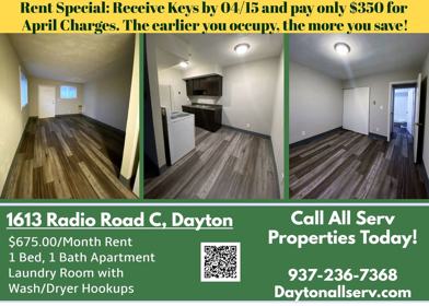 This unit is not Pet Friendly. Rent is $675.00/month, minimum security deposit equal to one month’s rent. Minimum household income requirement is 3x the monthly rent. 12 Month lease term required. Utilities are not included, electric is held in resident name. Landlord holds water/sewer/trash in their name and resident pays $50.00 a month for usage. $15 liability insurance required. Non-smoking unit. Applicants are required to complete a rental application and authorize a $40 credit and background check. Call All Serv Properties at 937-236-7368 to schedule a showing or visit our website, www Daytonallserv com for more information, additional photos, and online applications!