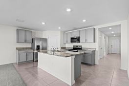 This one-story layout optimizes living space with an open concept kitchen overlooking the living area, dining room, and the outdoor covered lanai. The well-appointed kitchen comes with all appliances, including stainless steel refrigerator, built-in dishwasher, electric range, and microwave. There are lots of cabinets and an island, with granite countertops. The Master bedroom is located at the back of the home for privacy and includes a large walk in closet, a smaller closet and a nice master bathroom. Two additional bedrooms share the second bathroom. The third bedroom is located near the laundry room, which is equipped with included washer and dryer (not warranted). The bedrooms and living and dining rooms are carpeted and the rest of the home is tile. Lawn care in included and there is a sprinkler system. This property is not fenced in. There is a covered back patio great for grilling. The utilities are provided by the City of Newberry. This home is all electric. There is a two car garage.