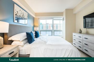 *During COVID-19, all Landing apartments are available to view through a virtual tour on the Landing website or through the Landing app. The application process from sign up to confirmation can be completed 100% online. Welcome to Landing! This is the modern renting experience you are looking for: * Fully Furnished * $0 Deposit * Flexible Leases * 24/7 Concierge * Utility & Wifi When you enter your home for the first time, you’ll notice the modern tones throughout, from the open layout to the kitchen’s granite countertops and tile backsplash finishes. Our included furniture and decor are expertly selected and placed for this individual layout, and the mounted Samsung Smart TV’s are ready for your enjoyment. Finally, your home is filled with our convenience amenities from the luxurious bedding to the completely stocked kitchen. Every element of your new home invites you to step right into a hassle-free living experience. Your home includes: * Bed and cozy linens * Ultra-fast Wifi * Lush toiletries * Plush towels * Bespoke furniture * Beloved kitchen appliances * Cutlery and tableware * Designer decor * Smart TV * Extra outlets Nitty-gritty details: * Price dependent on the length of stay * Bundled utility package based on location * Background check and proof of income necessary * Smoke-free