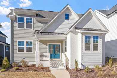 Welcome to Chatham Park! Nestled in the heart of Pittsboro's most vibrant community, this almost new and heavily-upgraded Garman Homes build offers 5 bedrooms, 3.5 baths and is entirely move-in ready! Proceed up the picturesque front entryway and into the sleek and spacious open living area. Two tones of kitchen cabinetry perfectly complement the stunning luxury vinyl floors, the pristine quartz countertops and stainless-steel appliances, which includes the refrigerator. Also included are the washer and dryer, window treatments and energy efficient smart thermostats! A sizeable main level owner's suite offers a comfortable escape and boasts a large WIC, dual vanities and a garden tub/shower combo. Just past the convenient main level laundry room, you'll find access to the private and functional bedroom over the garage, complete with a full bathroom. The second level of the home offers three additional spacious bedrooms, another full bathroom and ample floored storage space. An access road that brings you to the rear-facing garage provides additional convenience and privacy. The covered side porch is the perfect outlet to enjoy morning coffee, an evening meal and the wonderful weather North Carolina brings for so much of the year. Features within a quarter mile of the home include walking trails, Thales Academy and Knight Farm Community Park, in addition to being practically across the street from Paddles Swim and Pickleball Club (accessible w/ paid membership). All of this combined with easy access to downtown Pittsboro, the UNC Chatham Park Medical Office. the recently completed YMCA, Chapel Hill, Jordan Lake and so much more! Apply to make this your next home today!