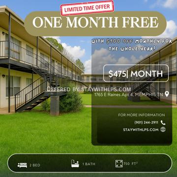 Take advantage of a limited-time move-in special at 1761 E Raines Rd — enjoy $1,200 off your lease, bringing your effective rent to just $475/month (regularly $599).