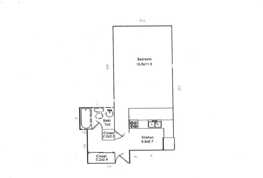 This 1st floor studio apartment is part of a 24-unit multi-family complex known as Golden Plaza. Features a living room, dining area, kitchen with range, refrigerator, and single bathroom. Convenient on-site app-operated laundry and off-street parking lot.
