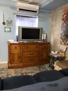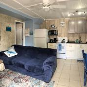 One bedroom apartment features a secure, private entry, an eat in Kitchen with Refrigerator, Stove, Toaster, Microwave, Coffee pot, Cookware and dishes. Main area, has a full sofa & TV for streaming.