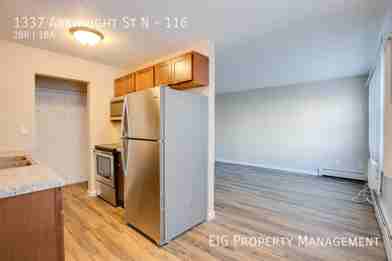 1337 Arkwright St #116, St. Paul, MN is a 2 bedroom, 1 bathroom apartment for rent. It is located in the Payne - Phalen neighborhood of St. Paul. It has apartment amenities including dishwasher, air conditioning, hardwood floor, on-site laundry, and walk-in closets. Cats and dogs are allowed, making it a pet-friendly apartment.