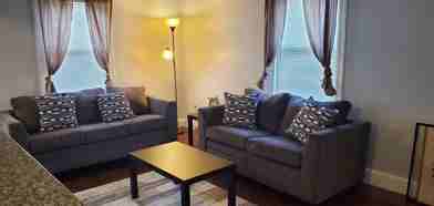 Welcome to Roslindale! This beautifully renovated top-floor 2-bedroom, 1-bathroom unit offers privacy, spacious living, and modern updates throughout. Featuring gleaming hardwood floors, stainless steel appliances, and ceramic tile in the bathroom, this unit also includes front and back private entrances, 1 off-street parking space in a private driveway, and additional street parking. Both bedrooms are generously sized with ample closet space. Pet-friendly with size restrictions. Coin-operated laundry is available in the basement ($1 per wash/dry). Conveniently located near public transportation, grocery stores, hospitals, and schools. Short-term leases (minimum 3 months) considered, with preference for long-term tenants.