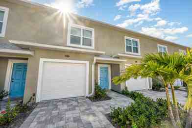 BRAND NEW TOWNHOUSE NEAR MARINA! Beautiful 2 BD / 2.5 BA designed in an open plan combo with living/dining room and galley kitchen, ceiling fan, impact windows, and wood-like vinyl flooring throughout. Dual cooling/heating AC system. Kitchen has an eat-in dining bar ideal for bar stool sitting for eating and entertaining. All new Whirlpool appliances and plenty of cabinet storage. Added features include, pull out spice rack, lid rack, and trash container. Split Bedrooms on the second level. Spacious Master bedroom has sliding glass doors, closets, own bathroom with beautiful tile flooring, walk-in shower and 2 vanity sinks. Second bathroom has tub/shower and 1 vanity sink. Plenty of natural light, fenced back paver stone patio with electric awning to keep cool and added privacy. 1 car garage with paver stone driveway for extra parking.  Electric car charging station in garage.  Guest parking located outside gated community under trees by the marina. Access to community dock, canoe/kayak/paddleboard launch area and picnic table waterside. Community dock on Elbow Creek. Conveniently located near shopping, dining, and entertainment, this rental property offers the ideal blend of luxury and convenience.  Pets under owner consideration. Restricted breeds not allowed.  Household pets, Service Animals (SA), and Emotional Support Animals (ESA) are subject to a pet screening though Petscreening com   Renter's insurance is required. HOA community.