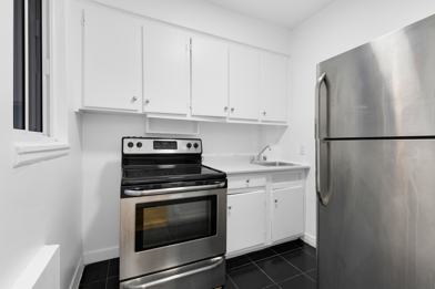 The rent is $1095 and includes kitchen appliances, hot water, and window coverings.