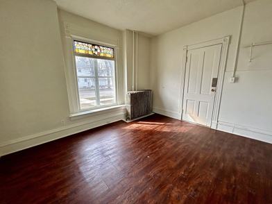Nice 1 Bedroom apartment on main floor of 4-unit building. Hard flooring throughout apartment. Recently painted. Close to high school, downtown and hospital.