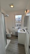 The unit features a modern kitchen with new appliances, granite countertops, and soft-close cabinetry, along with durable luxury vinyl tile flooring throughout. The bright bathroom includes a walk-in shower and plenty of natural light.
