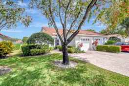 Welcome home to your Seasonal escape in this beautiful Villa with water views from your screened in Lanai! Prime Location & desired community! Home is being offered seasonally furnished for winter season. Featuring 2 Bedrooms plus a den, spacious floorplan, high ceilings, tile in living areas & carpet in bedrooms, large primary suite with ample closet space. Enjoy the convenience of a One Car Garage & Double Driveway. Short walk to the satellite pool. No pets! Palm Isles III is an active 55+ community that has amazing amenities such as a clubhouse currently under renovation, Association Management says it should be ready 12/2025 with 600 seat theater, card rooms, billiards, fitness center, library, tennis, Pickleball, Theatre, Indoor & Outdoor Pool & a Cafe for Breakfast & Lunch!