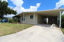 Check out this 2-bed, 2-bath home located in Camelot Lakes Village, an active 55+ community in Sarasota! This adorable mobile home, available furnished or unfurnished, has wood laminate and carpet flooring throughout, ceiling fans, and built-in shelving for added convenience. The kitchen is bright and airy, with a pantry, plenty of cabinet space and a breakfast bar for casual dining. Appliances include a refrigerator, microwave, dishwasher, and range. Sliders off the living area lead out to the screened lanai. Down the hallway you will find a spacious primary bedroom with an en suite bathroom, walk-in closet, and custom built-in area that can be used for a desk or a second vanity! A guest bedroom and guest bathroom complete the interior of this home. The large storage shed under the carport houses the washer and dryer, along with a utility sink and additional built-in shelves!
