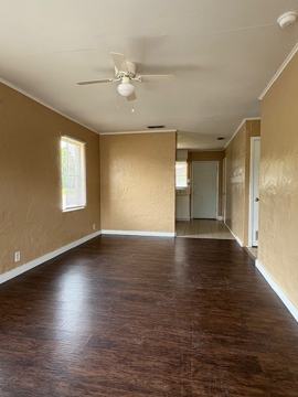 This particular apartment is a 2 bedroom, 1 bath with a large and private fenced back yard and features central heat and air, tile and wood laminate flooring, ceiling fans throughout, pet friendly, miniblinds, stove, storage closet and outside lighting. Included in rent: lawn maintenance, water and trash.