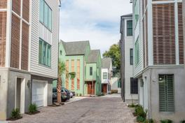 The community consists of 20 luxury rentals and long-term rental apartments, 8 short-term vacation rental suites, 1 office space and 1 restaurant space. The expansive brick court serves as the central element of the community and creates a shared open space for the residents to enjoy. Each building relates directly to the court, creating a common gathering space.