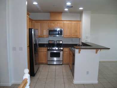 Penthouse location (4th floor) and luxurious upgrades includes dramatic tile flooring, raised-panel maple cabinets and wiring for surround sound system.