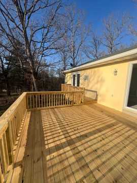 Large deck on front of house with a great view of country. Luxury vinyl plank flooring throughout the house.