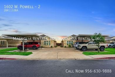 Welcome to 1602 Powell, located in the heart of Edinburg, TX. This 2-bedroom, 2-bathroom apartment boasts a spacious open floor plan with hardwood floors throughout. The modern kitchen features stainless steel appliances, including a stove/oven, refrigerator, and microwave. The master bedroom includes a walk-in closet and a private master bath. Stay comfortable year-round with central AC and ceiling fans in every room. Enjoy the convenience of having a washer and dryer included in the unit. The gated property offers added security, and the patio is perfect for relaxing outdoors. This pet-friendly apartment has breed restrictions in place. Tenant pays for electric and water, and trash removal is included. With a 12-month lease, you can enjoy the peace of mind of 24/7 maintenance support and included lawncare. Don't miss out on this fantastic opportunity to call 1602 Powell your new home!