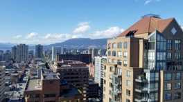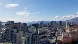Enjoy picturesque southwest English Bay views from this 800 sqft sub-penthouse. This spacious 2 bedroom and 2 bath home has stunning ocean, city and mountain views from all rooms. The kitchen has a stainless glass cooktop stove, dishwasher, microwave, granite counters and plenty of custom-built cupboard spaces. The solarium off the kitchen can is a great flex space that can be used as a breakfast nook or home office. The master bedroom is large enough to accommodate a queen-sized bed, has a closet with custom built-ins; a quaint balcony and views of English Bay. The second bedroom can also fit a queen, has the same custom closets, and also shares stunning views.