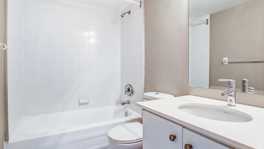 This unit is unfurnished, but some furniture can be provided for an additional lump sum payment (furniture includes a small wooden table and 4 chairs, a queen bed and mattress, a loveseat and a desk, all in good, though used, condition -- not pictured in this ad). Inquire for more details if interested.
