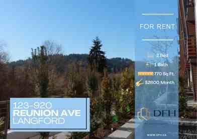 920 Reunion Avenue #123 is a 2 bedroom, 1 bathroom apartment for rent. It is located in Langford. It has apartment amenities including outdoor space, assigned parking, balcony, hardwood floor, dishwasher, fitness center, and in-unit laundry. Cats and dogs are allowed, making it a pet-friendly apartment.