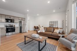 Newly built lower level townhome in the Prairie Trail district in Ankeny. Welcome to this beautifully built one bedroom home in the heart of The District. Within walking/biking distance to several stores, grocery stores, Dr offices, schools, theaters, restaurants, bars and so much more! Walking paths and parks surround. This stunning home offers a spacious open floor plan. This 940 sq ft home features beautiful hardwood floors throughout, large natural light windows, and street parking. Front porch and back porch areas on all homes. The centerpiece of the house is the kitchen, offering luxury high end quartz countertops, all stainless steel appliances, and plenty of cupboards. Highly energy efficient with heat pump. High speed fiber optic internet up to 2 gig. Washer and Dryer in unit. Walk in closet and en-suite bathroom.