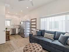 COMPLETELY REMODELED BOTTOM UNIT, FURNISHED. Steps to the best surf beach in So Cal, El Porto, this furnished one-bedroom apartment is in North Manhattan Beach, just a half block from the beach. The unit is approximately 500 ft and very light and airy. The entire property has been remodeled with hardwood floors throughout and window coverings on all windows. The kitchen has stainless steel appliances, including a dishwasher, a double-door refrigerator, a stove, and white shaker wood cabinets. There is a small table and chairs for dining. The living room has a sofa bed, a large flat screen, and a bedroom has a king bed- both rooms have ceiling fans to allow the sea breeze inside. The new bathroom with Mexican river stone and white subway tile has a walk-in shower and vanity. There is a washer and dryer in the property and a one-car garage. Outdoor shower! UTILITIES ARE NOT INCLUDED. Property must be seen in person, no video showings.