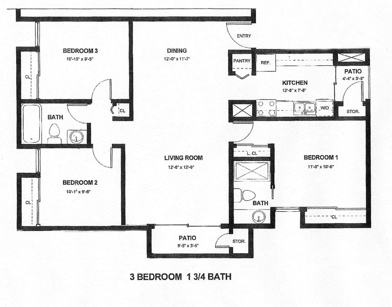 Three Bedroom Two Bath - Split Floorplan - Pebble Creek Apartments