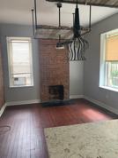 1st floor, open living room and kitchen, stainless appliances, kitchen island