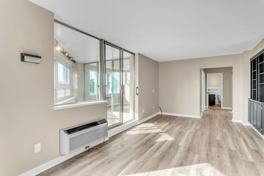 The sleek, contemporary kitchen features stone countertops, stainless steel appliances, and modern cabinetry. The spacious living area includes custom built-in cabinetry and sliders leading to an enclosed balcony, creating extra space for relaxing or entertaining. Both bedrooms are filled with natural light and offer ample closet space. The fully remodeled bathroom showcases elegant finishes and contemporary fixtures.