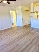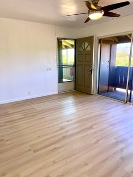 Come home to this one bedroom townhome unit at Palm Villas in Ewa Beach. This upstairs unit features newer vinyl plank flooring throughout, AC unit in the bedroom, ceiling fans in living room and bedroom, gas range and oven, refrigerator and washer and dryer in the unit! Well maintained community and close to shopping, restaurants, schools and community parks. One covered, assigned parking stall near the unit. Tenant responsible for electricity, gas, cable, internet and telephone.