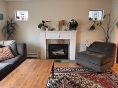 1800 sq ft includes 3 bedrooms, massive main washroom with separate shower and claw foot bath, living room (with gas fireplace) dining room, and large kitchen with separate kitchen eating area. Lots of character - hardwood floors, bay windows, and Indian rug included.