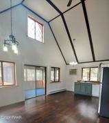 Chalet for rent in amenity filled gated community. 4 bedroom, 2 bathroom home with large screened in porch adjacent to deck. Main living area / kitchen has high ceiling and plenty of cabinet space, laminate flooring. Two bedrooms and full bath on main floor. Large bedroom on upper level. Lower level has a large family room, bedroom and bathroom. Located on North Side of the community. Rentspree application required $39.99. Must accompany real estate agent to view property, bring drivers license as identification (and valid registration to enter community in own vehicle)