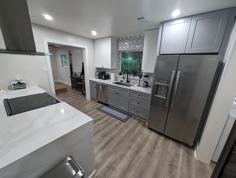 Prepare to be blown away by this sleek & stylish redesigned home on an oversized lot with 4 bedrooms, 2 baths, & a pool! This home offers dazzling upgrades from top to bottom. The kitchen showcases quartz countertops, shaker style cabinetry, bar seating, ample storage space, a modern tile backsplash plus brand new stainless steel appliances. The bonus mud/laundry room w/ extra storage space is perfect for any lifestyle! The upgrades throughout the home are impressive, including luxury vinyl plank flooring, quartz countertops, & designer light fixtures. Step into the primary suite with a spa like bathroom & spacious shower w/ double heads. All new double pane windows & insulated doors along with new textured walls, LED lighting & fresh paint. The focal point of the backyard is the sparkling pool which provides a refreshing escape and still leaves extra room for a pool lounge or summer kitchen. With its sophisticated floor plan, modern finishes; it is the perfect place to call home!