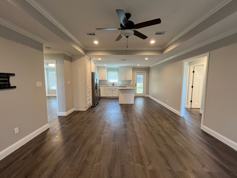 Like new 4 bedroom 2 bath home. No carpet, LVP & tile floors. Very open floor plan. Great room has tray ceiling & recessed lighting all opening up to the kitchen. Kitchen has a center island lots of counter space, pantry & pretty white cabinets. Stainless appliances including refrigerator. Master bedroom has tray ceiling, walk in closet, nice size bath with a large vanity & oversize shower head. 3 guest rooms and hall bath. Step out of the kitchen & you have a patio perfect for grilling out & a huge yard surrounded by a privacy fence. Nice above ground pool with sand filter. Home backs up to a pond on the outside of the fenced in area. A community pavilion perfect for family gatherings.