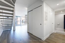 This renovated 1 Bed +den, 2 bathroom unit offers 906 square feet of space with a balcony for city views. Floor-to-ceiling windows flood the area with light, creating a bright atmosphere. The open layout seamlessly connects living, dining, and kitchen areas. All appliances, including the LG Tower washer/dryer, are brand new. The main floor features a powder room, while upstairs, a spacious bedroom with walk-in closet and ensuite awaits, alongside a large den suitable for office or child's room. Located on a quiet street near Entertainment, Fashion, and Financial Districts, with UTILITIES, PARKING & LOCKER INCLUDED in rent.