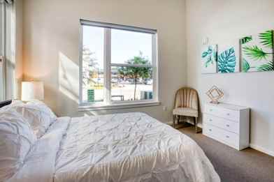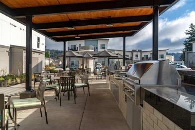 Enjoy a village square atmosphere, where apartments and retail surround an acre of pedestrian-oriented outdoor amenity spaces. Inspired by the sense of place and outdoor activity found in European plazas, The Mains woonerf invites connection among stunning views of Mt. Rainier by day and under the warm glow of festival lights by night.