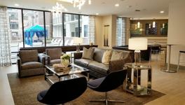 Skylounge with epicurean kitchen, bistro seating and exquisite views of downtown