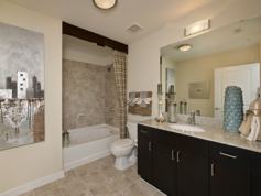 Spa-inspired bathrooms with private stand-up showers and soaking tubs