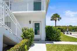 Enjoy water views from every room from this sought-after first floor 2/2 corner unit in desirable 55+ community! Updated kitchen and baths, tile floors throughout, impact windows. Community features pool, clubhouse, shuffleboard, dock for fishing/relaxing. Restuarants and specialty shops just around the corner on Royal Palm Pointe. Only minutes from the bridge and all the island has to offer...restaurants, museum, theater and beaches!