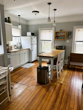 WALK TO DOWNTOWN! This Charming upper level furnished apartment in turn-of-the century home in downtown Asheville. Great location across the street from the YWCA and just 2 blocks from Patton Avenue. Less than a mile to Mission Hospital. Walking distance to South Slope breweries, Carrier Park, the dog park, River Arts District, greenway and all that Asheville has to offer. The YWCA is directly across from property. This space has some vintage furnishings, ceiling fans in every room and is filled with local art. Nine foot high ceilings, hardwood floors with plenty of light and a fully equipped kitchen to prepare your meals including a slow cooker, rice cooker, microwave, electric water kettle and toaster oven and flat top stove. With black out curtains in the bedroom and a internet TV's in both the bedroom and living room. Including a desk with a wireless phone charger and high speed internet and wifi in the heart of downtown and close to restaurants, breweries, shops and galleries. This space is perfect for the remote worker, traveling professional or couple visiting the area while looking for a more permanent location or someone wanting to stay for an extended period of time while exploring Asheville and the surrounding mountains. This upstairs unit is in a duplex with a private entrance and is furnished with utilities included. Window units are provided for air conditioning and free laundry facilities are included with a private entrance downstairs. No pets please. 30 day minimum lease required and a month to month lease going forward. First months rent and equal security deposit with background check upon move in date.
