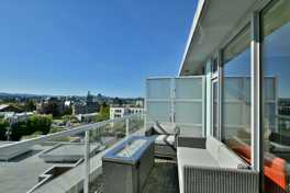 This designer penthouse offers 2 Bedrooms, 2 Bathrooms and 2 Secure Parking Spaces plus a full length sun deck to soak in the views and stunning sunsets! Concrete and steel construction and only one direct neighbour bestow this flat with a sense of peace and serenity. Fully furnished and fully equipped with everything you need, just move right in. Second bedroom is set up as an office with a Murphy bed for guests.