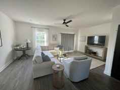 This gorgeous end-unit townhouse has plenty of green space and privacy. It features a full kitchen with very large island, double ovens, and stainless steel appliances. Washer and dryer are located in a large upstairs laundry room complete with a utility sink. The 3 floor layout provides lots of living space. The house is completely furnished with kitchen supplies, towels, and sheets included - READY TO MOVE IN NOW!