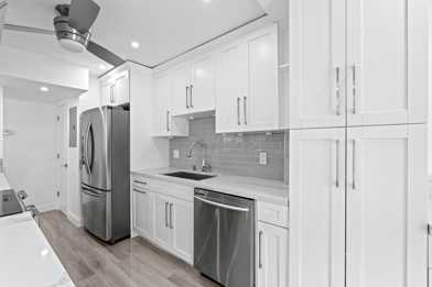 Beautifully updated 2-story condo in East Boca. The location couldn't be better just minutes from the beach, shops, restaurants, Downtown Delray, Mizner Park, and the Brightline station for easy travel. Inside, you'll find a modern, open kitchen with quartz countertops, stainless steel appliances, and white cabinets. Convenient built-in desks for a home office or study space. The living space feels light and airy, with a sunroom that offers additional entertaining space or a cozy spot to unwind. Both bedrooms are spacious, and the bathrooms have been stylishly updated with frameless glass showers. You'll also enjoy views of the pool and garden. The community offers great amenities a pool and tennis courts. Water and basic cable are included.