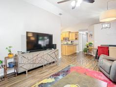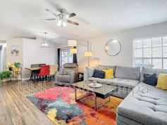 Upon entering, you're greeted by an airy and bright living area adorned with tasteful decor and ample natural light, creating a welcoming ambiance for relaxation or entertainment. The open-concept layout seamlessly connects the living room to the modern kitchen, a breakfast bar where sleek appliances, granite countertops, and ample storage space await the culinary enthusiast.